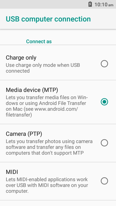 Your G-mee Play comes with a micro USB cable. Connect the G-mee Play to your PC or Mac using the cable and activate ‘File Transfer Mode.’ Just tap on the ‘Media device (MPT)’ on the G-mee Play.