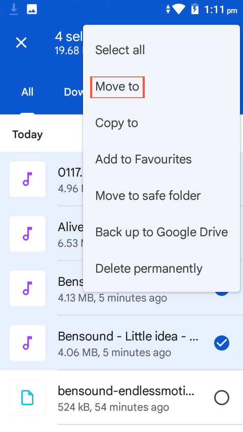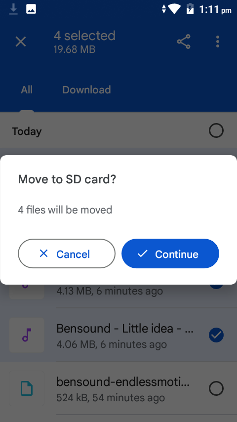 You can transfer files from internal memory to SD Card on the device. Just Select all the files you want to copy, tap on the three dots on the upper right corner, tap ‘move to’. You will be shown the option to move the files to the SD Card. Just tap continue to move the files. Once done, access ‘Files’, and check the SD card if the files were successfully moved.