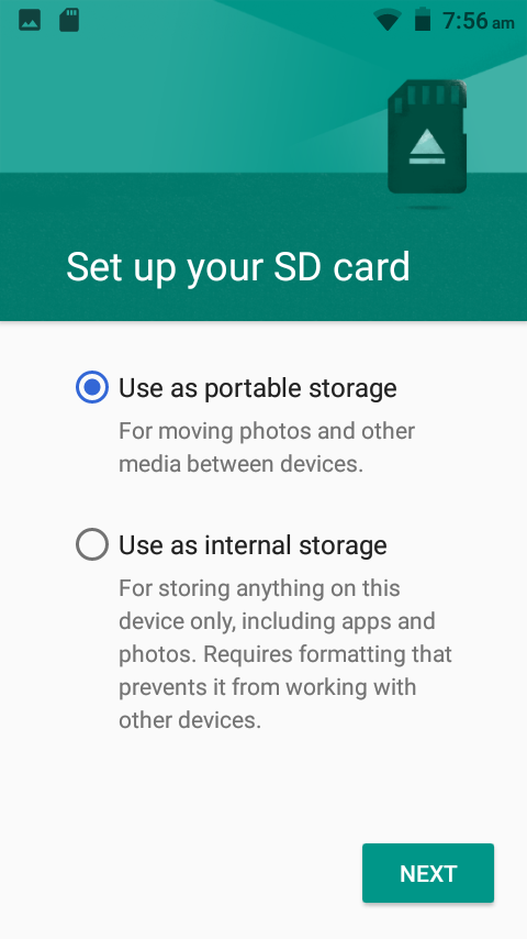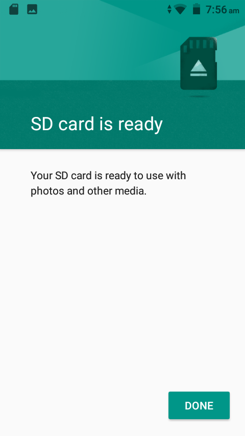 After tapping ‘Next’ you will be shown the below image. Now you have correctly set up the MicroSD card you can begin copying files directly to the card.
